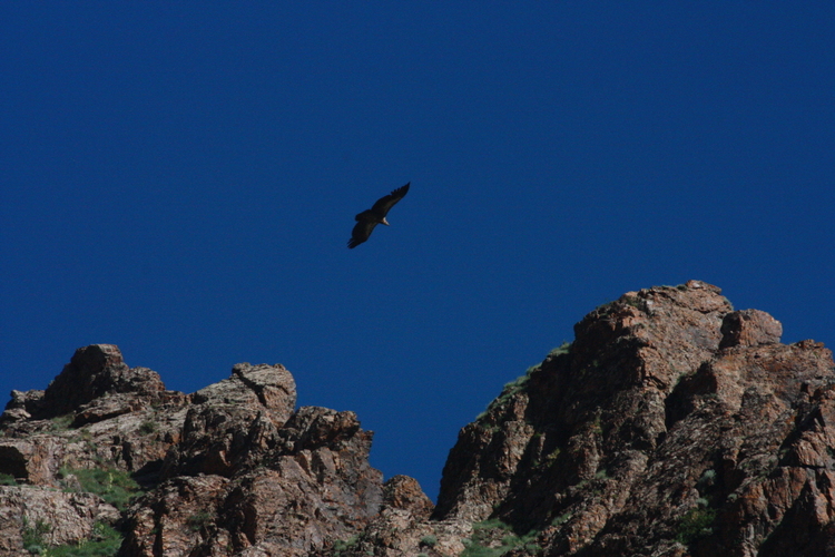 ‘열’ 은 중앙아시아의 해발 1,500m-3,000m 지역에 사는 육식 맹금이다. 몸길이가 95-125cm 정도이고, 날개를 펴면 3m 정도 된다고 한다. 주둥이 아래 긴 수염이 있어서 긴 수염 독수리라고 부른다. 한번 뛰어 날면 7,500m 까지 올라가는 가장 높이 나는 새라고 한다. 하늘을 올려다보면 협곡 사이 쪽 빛 하늘에 구름 사이로 ‘열’의 비행을 볼 수 있다. 몽골에서 육식 새 중에서 가장 크고 희귀한 새 이어서, 1953년부터 사냥이 금지되었고, 2012년에 몽골 정부의 결정으로 7번째 희귀 동물로 기록되었다고 한다.
